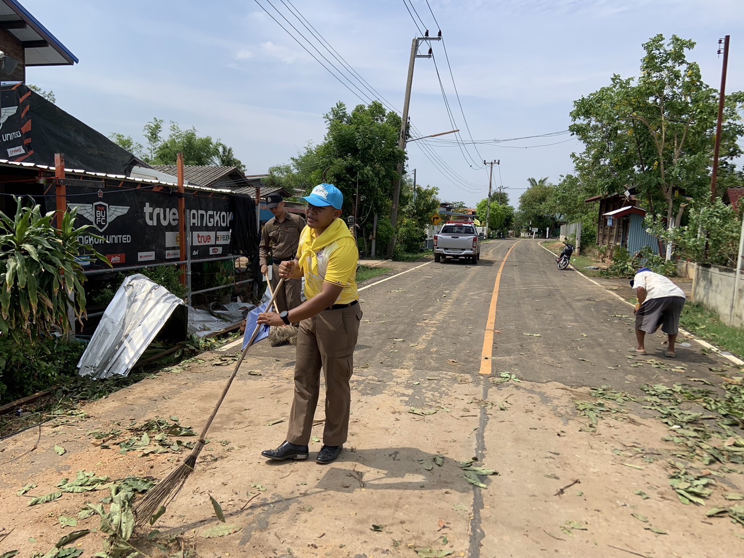 - วันนี้เวลาประมาณ 09.00-12.00น.ร้อยเวร 20 พร้อม ว30 ออกตรวจพื้นที่บริเวณบ้านห้วยสำราญ ม.1 และบ้านห้วยแสนสุข ม.14 สอบถามผู้นำชุมชนทราบว่าไม่มีชาวบ้านในละเเวกนั้นได้รับผลกระทบจากพายุฝนฟ้าคะนองแต่อย่างใด—>จึงได้ออกตรวจมายังพื้นที่บ้านตาดี ม.10 ต.ห้วยสำราญฯ ประสานผู้นำชมชนทราบว่าได้รับผลกระทบจากพายุดังกล่าวหลายหลังคาเรือนจึงได้ให้ผู้นำชุมชนพาตรวจพื้นที่ๆได้รับผลกระทบซึ่งได้รับความเสียหายประมาณ 20 หลังคาเรือนจากทั้งหมด100กว่าหลังคาเรือน