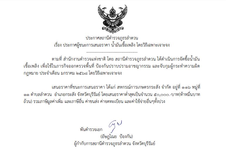 ประกาศการจัดซื้อจัดจ้าง(น้ำมันเชื้อเพลิง) ม.ค. 68 2 มกราคม 2568 โดย admin / ข่าวจัดซื้อจัดจ้าง PDFประกาศสถานีตำรวจภูธรลำดวน ม.ค.68ดาวน์โหลด Facebook iconFacebookTwitter iconTwitterLINE iconLine