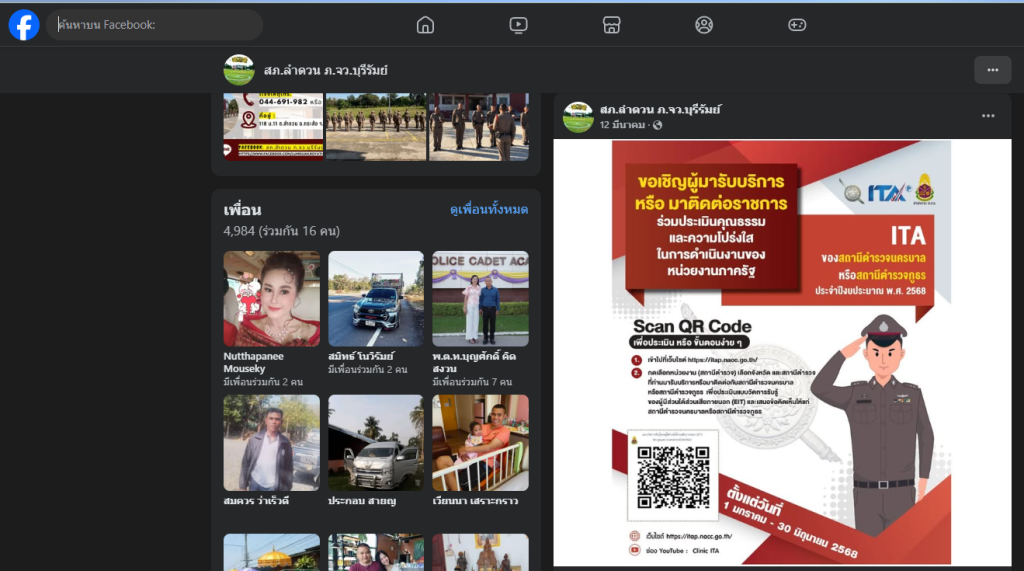 การประชาสัมพันธ์ผ่าน Face book สถานีตำรวจภูธรลำดวน